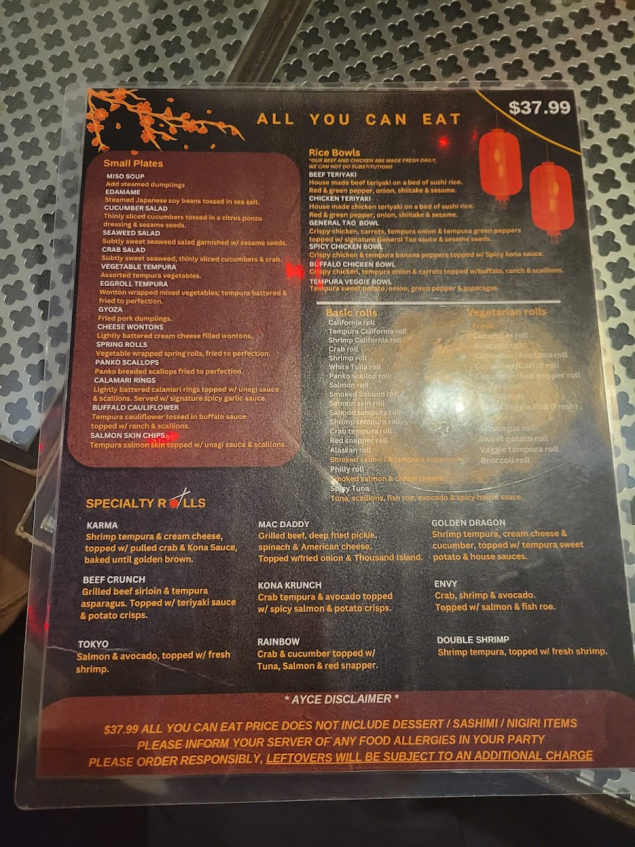 We had an amazing dinner- a lot of sushi options and they have some very interesting and innovative sushi options! Amazing service from Krys! Made us feel very welcome for our first time checking this place out!